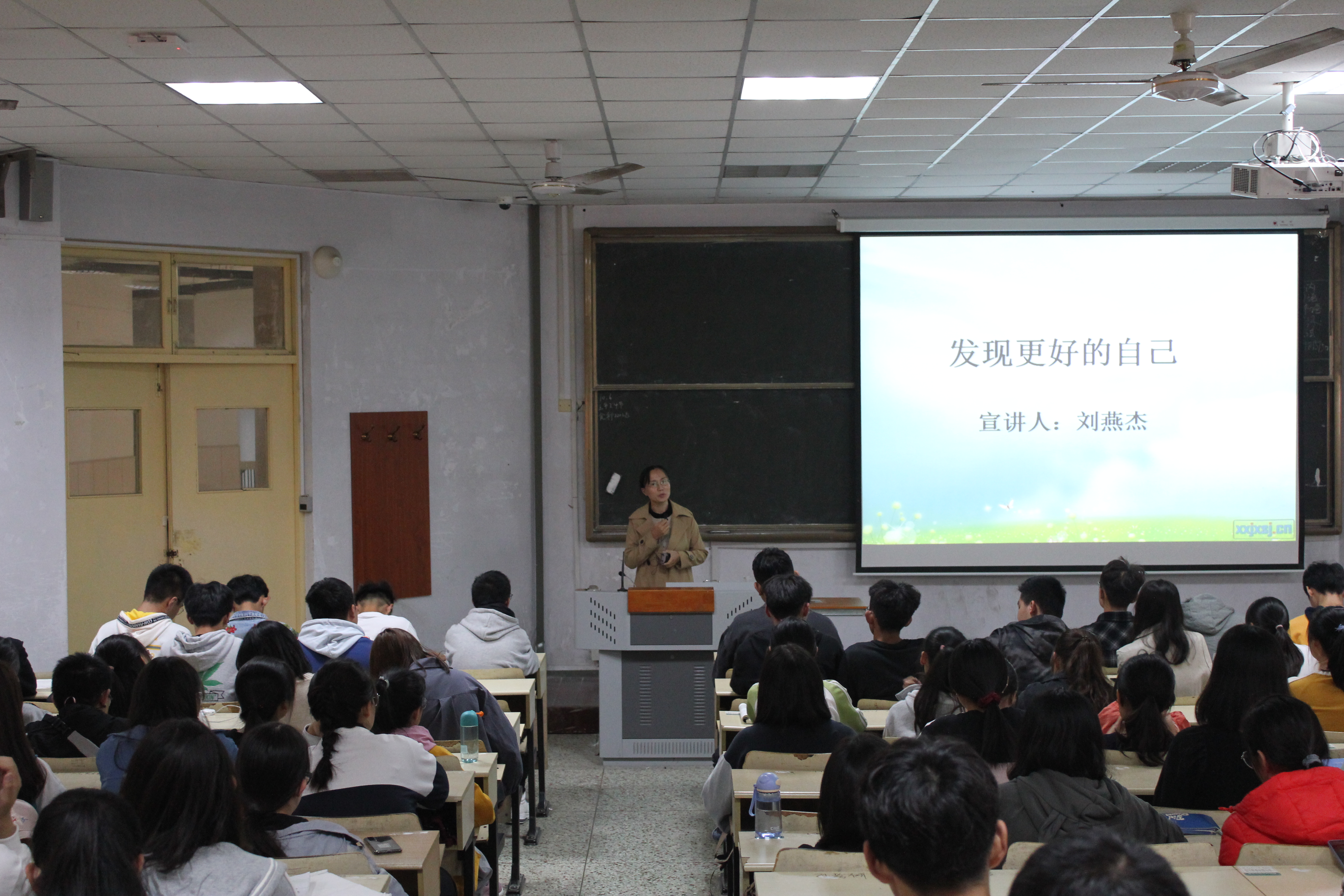 为使广大新生能够尽快地适应校园生活,合理规划自己的老员工活,10月6日,太阳成集团tyc522cc在教学区开展新生适应性讲座,主题为《发现更好的自己》,讲座由太阳成集团tyc522cc团委书记刘燕杰主讲。