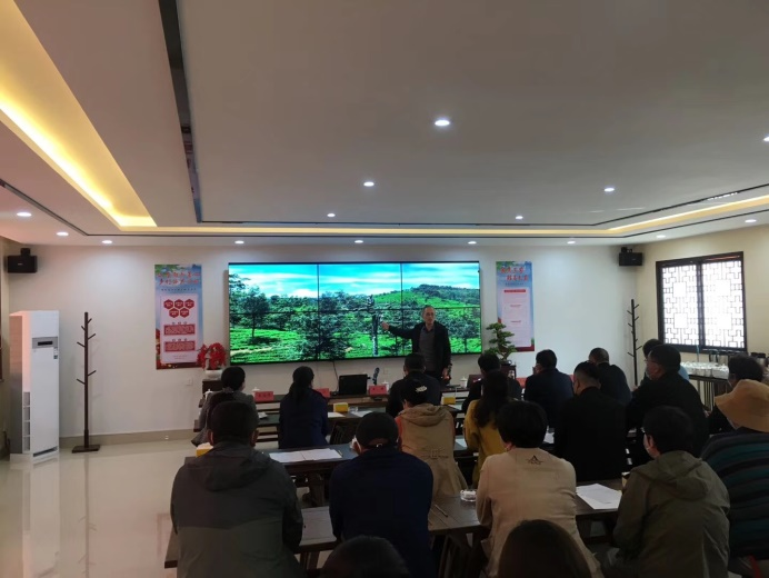 3月25日,丁兆堂教授还应邀到即墨区鳌山卫镇,为100余名茶农及企业技术人员举办生态茶园培训班和“茶叶提质增效技术现场会”,指导“茗梅小镇”田园综合体发展,助力当地茶产业转型升级。