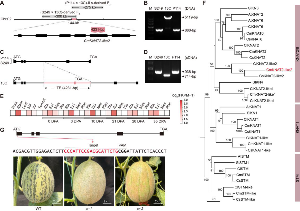 图1 CmKNAT2-like2调控甜瓜果皮覆纹的形成