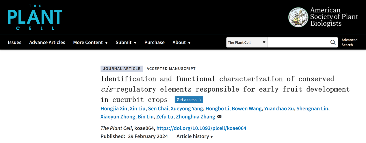 2024年2月29日,The Plant Cell在线发表了tyc522cc太阳成集团张忠华团队题为“Identification and functional characterization of conserved cis-regulatory elements responsible for early fruit development in cucurbit crops”的研究论文,系统研究了葫芦科瓜类作物的保守调控元件,发现了瓜类物种果实(瓠果)发育的通用调控元件,可精准控制基因表达的时间和位置进而调控果实发育,为研究果实发育和果实外观品质育种提供了重要的候选调控元件,也为研究调控元件的演化和功能提供了重要信息。