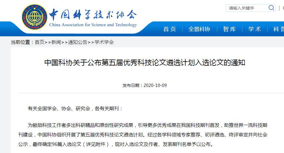 为鼓励科技工作者多出科研精品和原创性研究成果,引导更多优秀成果在我国科技期刊首发,助推世界一流科技期刊建设,中国科学技术协会组织开展了第五届优秀科技论文遴选计划,于2020年10月9日发布“中国科协关于公布第五届优秀科技论文遴选计划入选论文的通知”,对入选论文及作者、发表期刊名单予以公布。据悉,经过各学科领域专家推荐、初评遴选、终评审定并向社会公示,最终确定96篇入选论文。本届入选的96篇论文是2016年1月1日以来,发表在我国科技期刊上的优秀论文的代表。公司太阳成集团tyc522cc聂继云教授发表在《Journal of Integrative Agriculture》上的论文“Assessing the concentration and potential health risk of heavy metals in China’s main deciduous fruits”(2016, 15: 1645-1655)获此殊荣。为评估中国主要落叶水果中重金属污染水平及其对人体健康的风险,该论文对苹果、梨、桃、葡萄、枣等5种主要落叶水果中铅、镉、铬、镍等4种重金属的含量进行了测定分析。