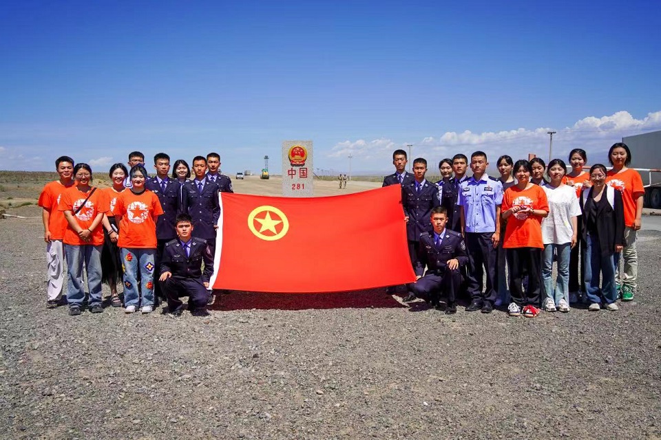 在阿拉山口出入境边防检查站,实践团成员们与站点民警一同升旗、参观警史馆,聆听边防民警们英勇无畏的英雄事迹,切身体会和感悟建站三十多年来边检人“不忘初心、牢记使命”的汗水与艰苦。陈列馆中,一件件缴获的边检违禁物品,静静地传递着那些没有硝烟的战争中民警们的英勇和无畏。成员们由此深刻地体会到,一代代边防民警心怀万里边关家国情,扎根在风口国门口岸,不顾个人得失,坚决捍卫国家利益,以坚韧不拔的意志和无私奉献的精神,铸就了坚不可摧的国门防线,为国家的繁荣稳定、为经济的发展和对外交流合作提供了坚实保障。