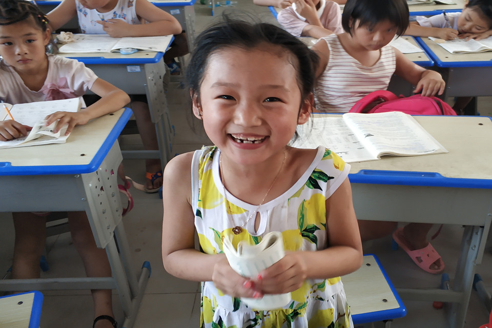 “老师再见。”趣味数学课上完了,队员刚说完下课,孩子们忽然一下子都站了起来,大声地跟队员说了再见。“完全都没有想到,受宠若惊的感觉。”队员董翠娜说。孩子的思维其实是最简单的,你对他好,他就会对你好。