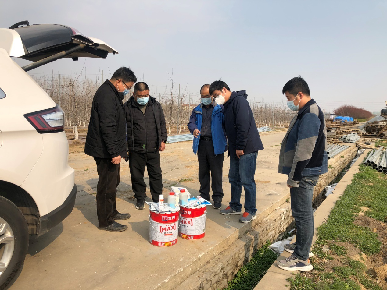4.2 莱西疫情解封后,张玉刚教授和李保华教授及姜生辉博士,来到莱西良种场,进行果园指导,并送来了苗木进行早期病虫害预防的药剂配方,对果树苗木起苗后如何分级、打药、包装、库存、运输等细节进行了指导。为新建果园的优质苗木以及成活率提供技术支撑。