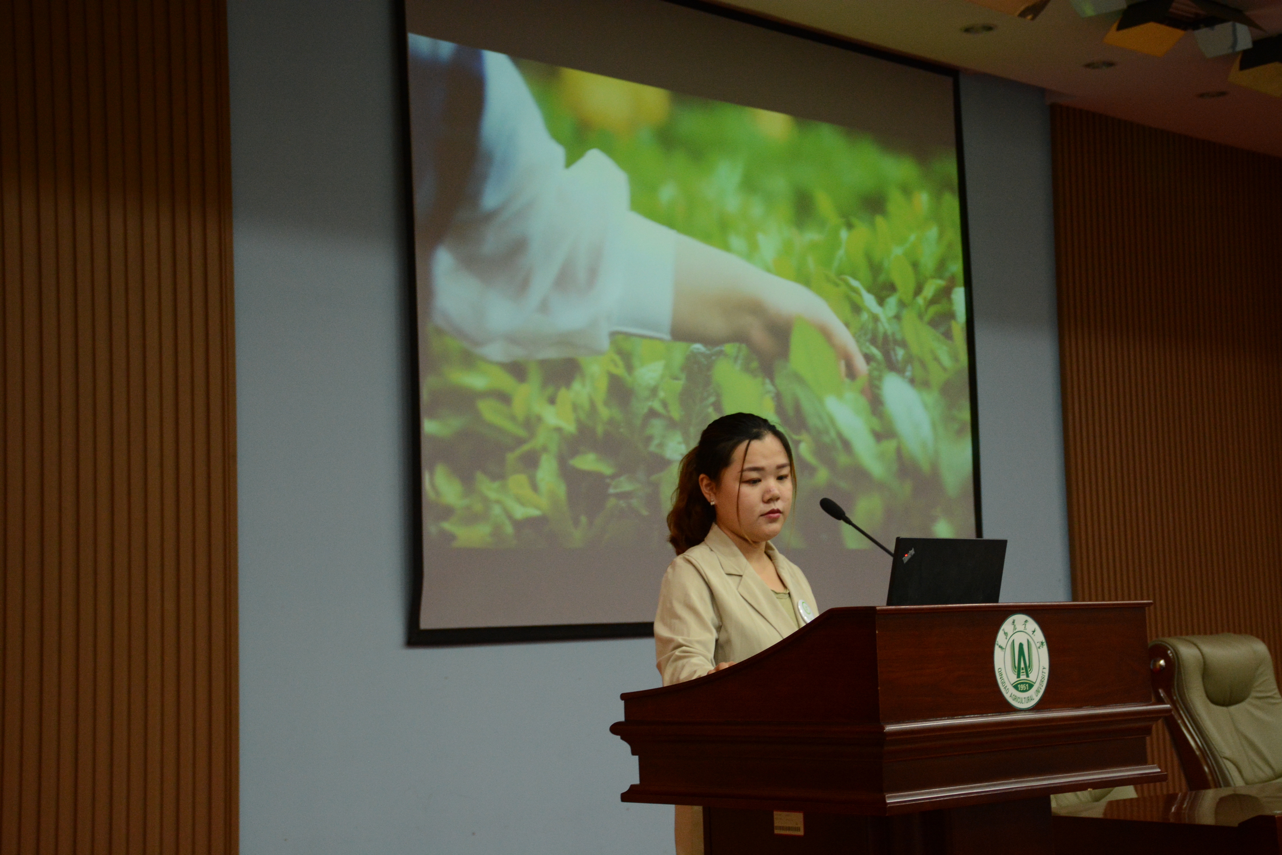 分享会中,实践团七位优秀代表分别从前期准备、实践过程、实践成果和实践感悟四个方面向同学们展示出社会实践的独特魅力。分享过程中,“访非遗,逐国梦”实践队队长朱广雪以照片、视频的形式,向同学们分享了学习草编、制做烧饼、走访面塑等实践过程中的点点滴滴,并在最后提出了“学古之道,有食笋而去其箨也”的主题,使实践内容鲜明且具特色,也让同学们进一步了解了非物质文化遗产深厚的底蕴。此外,以公司茶学专业为实践特色的“茶之行,爱之旅”社会实践队,在视觉与听觉的享受中向同学们讲述了他们与茶叶的故事,让同学们在感受社会实践意义的同时,也让他们接触到不一样的社会实践。
