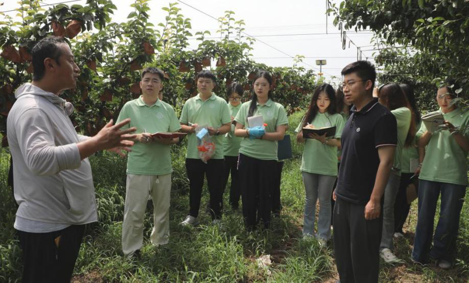 “大爷,这是我们整理的盐碱地果树病虫害防治手册,您看这几项要点特别实用。”实践团结合前期调研数据,深入田间地头、农户家中,开展了宣讲推广。针对农户关心的土壤盐碱化治理、耐盐碱作物栽培等问题提供技术指导,用通俗易懂的语言讲解了“大食物观”理念,累计服务农户100余人。