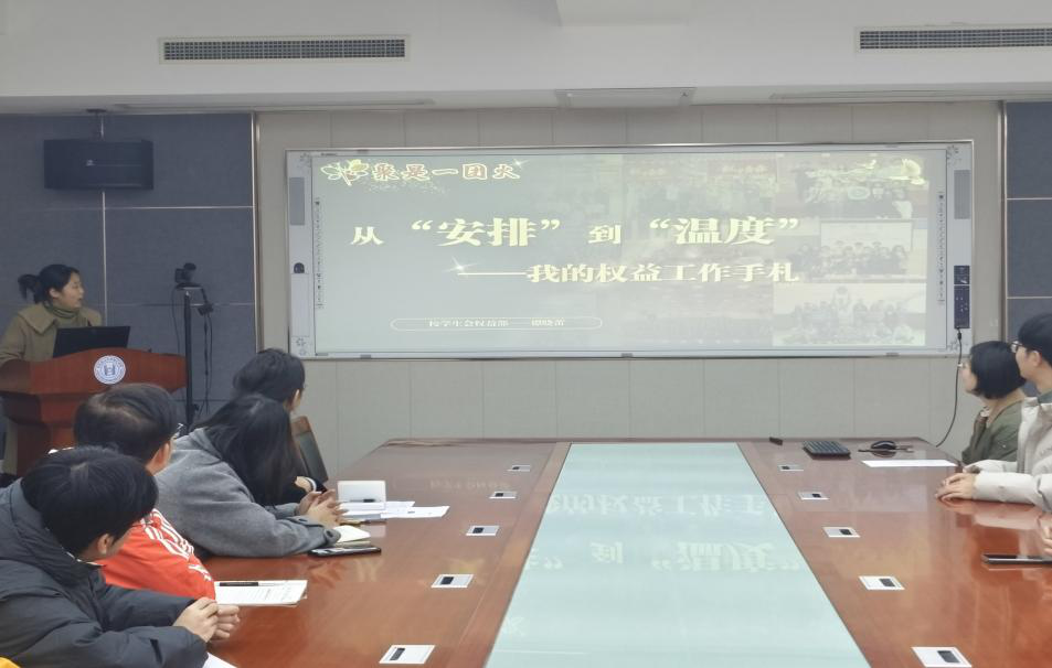 谭晓蕾以《从“安排”到“温度”:我的权益工作手札》为题,从三个方面分享了权益部工作的实践经验与成长感悟。一是介绍在日常工作中,如何将工作制度与人文关怀有效结合;二是介绍“工作台账”制度,明确任务责任、跟踪进度;三是分享心得体会,建议员工干部要学会从“自我中心”转向“全局视角”、从“被动接受”迈向“主动思考”,展现员工干部以温度传递力量、用服务凝聚青年的责任担当与人文情怀。
