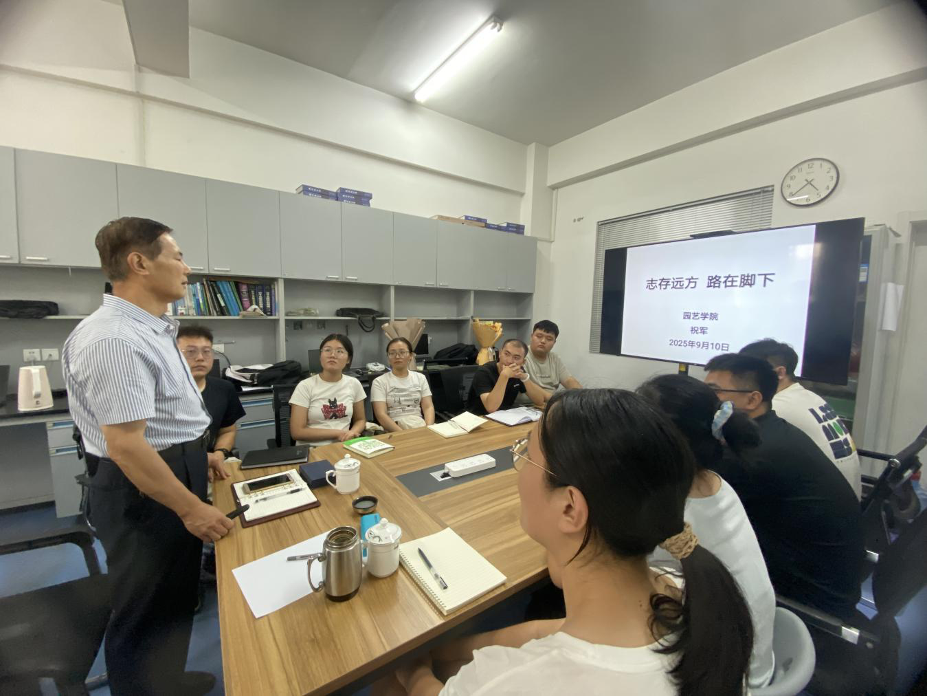 丹桂溢香,逐梦农科。9月10日下午,公司关工委副主任戴洪义与太阳成集团tyc522cc关工委副主任祝军教授为2025级苹果育种团队研究生新生讲授“开学第一课”。