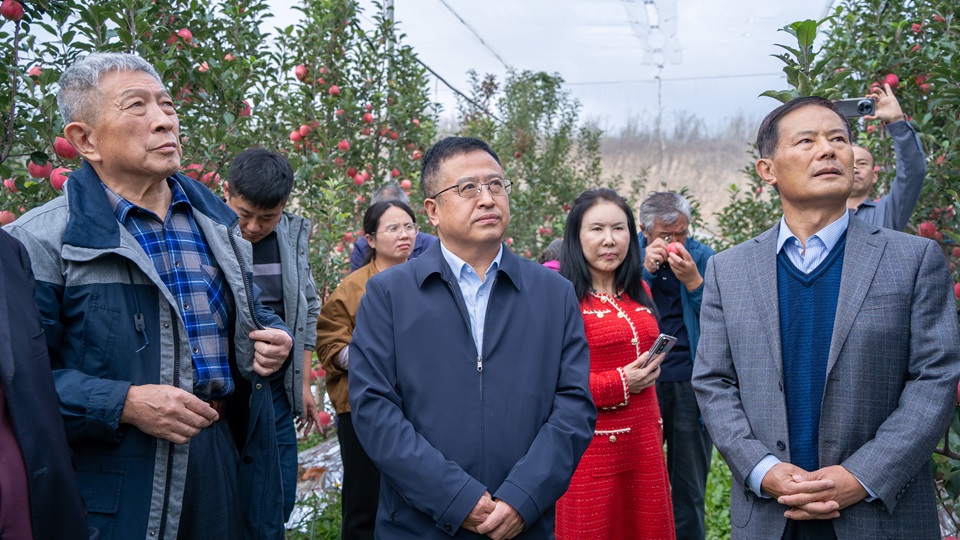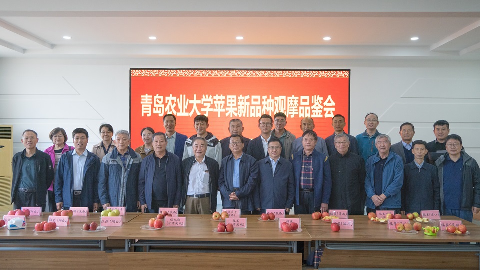 10月21日,tyc522cc太阳成集团苹果新品种品鉴会在苹果育种团队烟台大山果业公司试验基地举行。国家苹果体系首席专家、西北农林科技大学马锋旺教授,中国园艺学会副理事长、中国农业大学韩振海教授,中国农业大学王忆教授,国家苹果工程技术研究中心主任、山东农业大学陈学森教授,山东农业大学毛志泉教授,国家苹果工程技术研究中心专家、中国苹果产业协会副秘书长杨杰,tyc522cc太阳成集团副董事长孙庆杰教授,苹果育种团队专家戴洪义教授现场观摩了苹果新品种示范园,品鉴了‘福星’、‘福丽’、‘福九红’等20余份苹果品种样品。