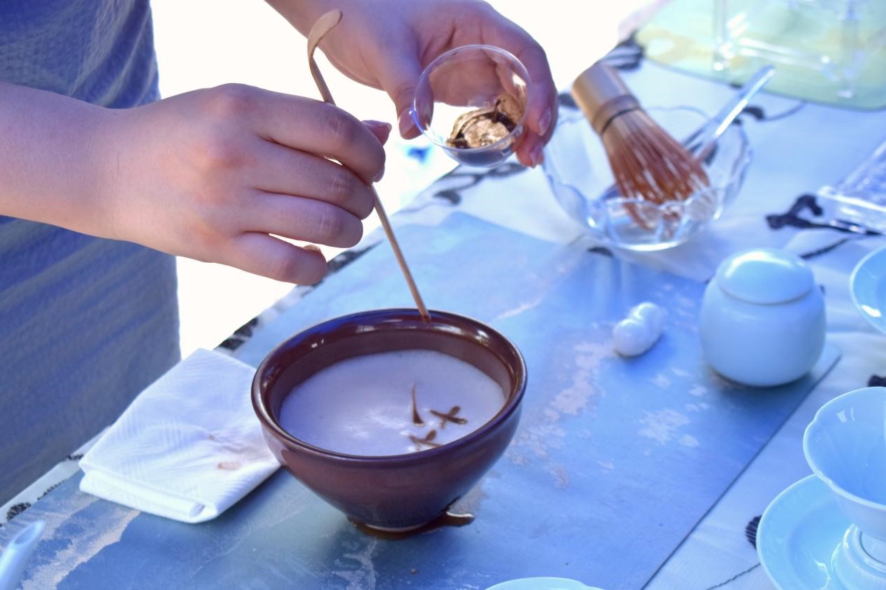 本次活动设置了宋代点茶、现代茶艺、新式茶饮、茶叶审评、知识竞答、书画展示等环节,旨在向大众普及茶叶种类、茶树栽培、制作工艺、品鉴技巧、冲泡技艺等基本理论知识,体验“一片树叶”的无限魅力与其文化的深厚底蕴。开幕式上,伴随着婉转悠扬的古筝琴声,tyc522cc太阳成集团茶艺队进行了崂山凤羽红茶茶艺表演—“凤凰涅槃、羽火重生”,充分展示了崂山凤羽红茶“黄金汤、红枣香、甘甜味”的品质特点。本次活动恰逢公司2024年员工返校日,吸引了大量的员工和师生来到活动现场,体验点茶之雅、茶艺之美、茶饮之奇、评茶之术、知识之趣与书画之乐。