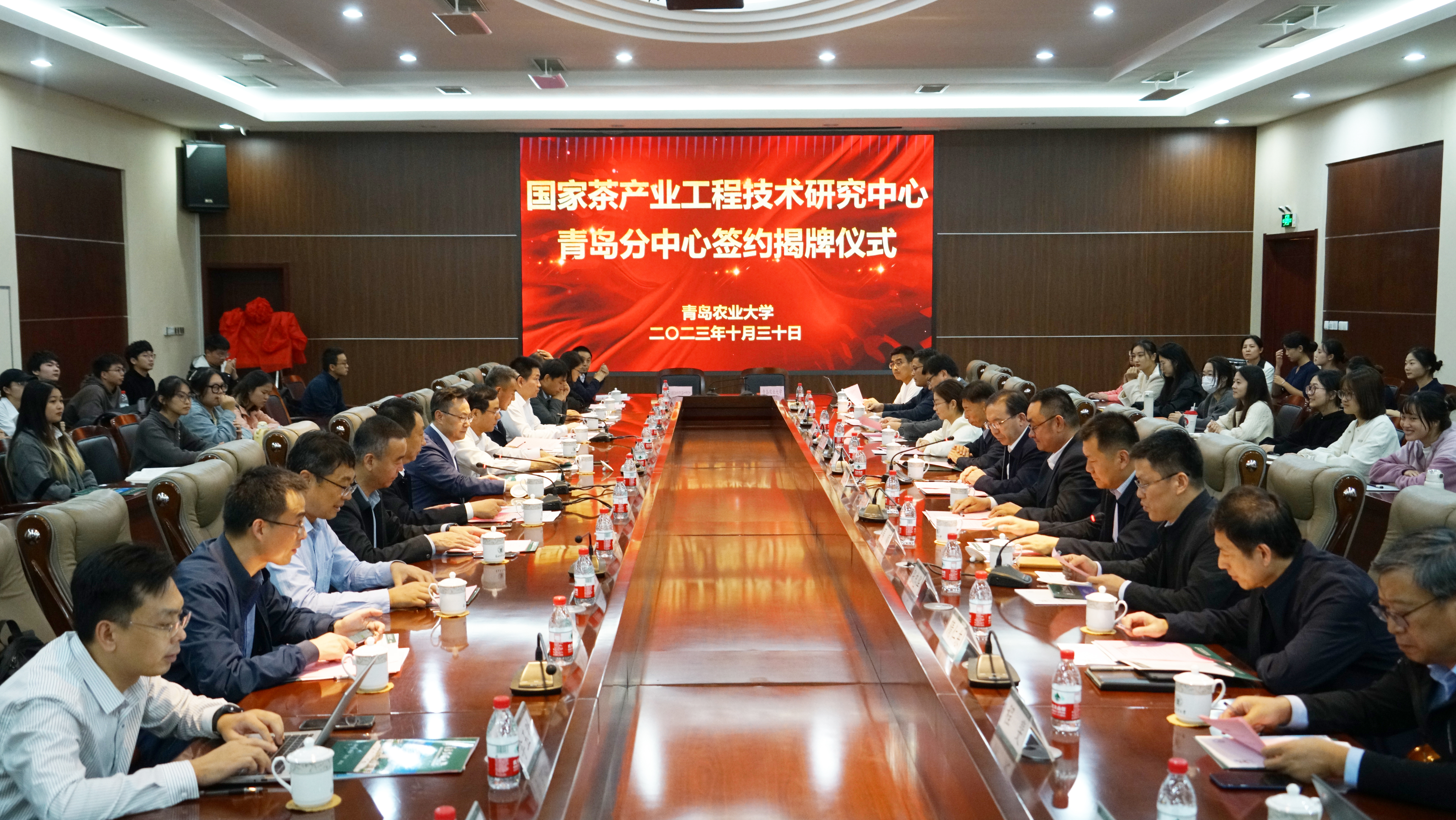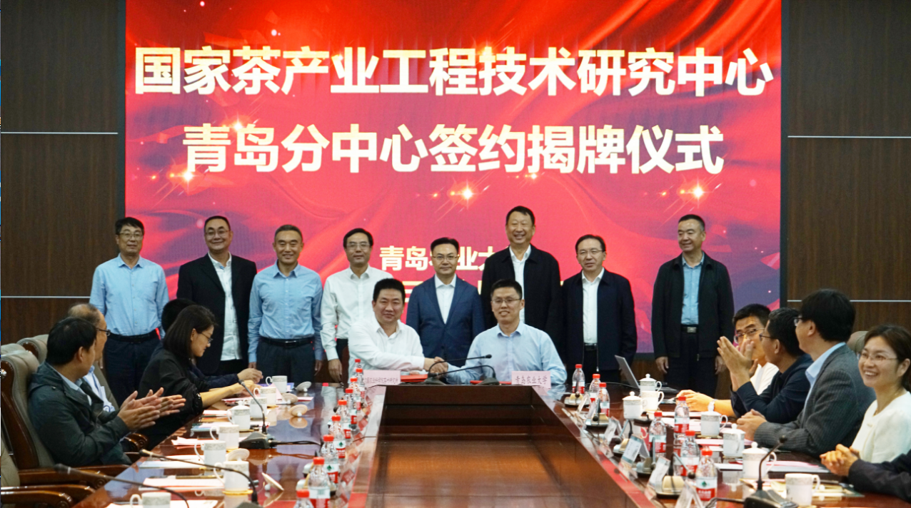 10月30日下午,tyc522cc太阳成集团与中国农业科公司茶叶研究所在公司学术会馆会议厅签署“国家茶产业工程技术研究中心青岛分中心”共建协议,并举行揭牌仪式暨北方茶产业提升发展研讨会。中国工程院院士、湖南农业大学学术委员会主任刘仲华,中国农业科公司茶叶研究所所长姜仁华、副所长王新超、茶叶加工工程研究中心主任袁海波,安徽农业大学茶树生物学与资源利用国家重点实验室教授宋传奎,湖南农业大学教授熊立瑰,江苏大学教授欧阳琴,山东省农业技术推广中心党委书记杨武杰、作物二部副部长崔秀峰、高级农艺师李玉胜,山东省农业农村厅科教处副处长李月圆,青岛市农业农村局副局级领导干部徐振峰、科技教育处处长于琛琛,青岛市农业技术推广中心副主任李松坚、研究员张云伟、经作部负责人纪国才等参加了签约仪式。会议由太阳成集团tyc522cc经理张忠华主持,tyc522cc太阳成集团副董事长赵金山、北京研究院经理李芝贤、实验室管理中心主任周顺、科技处副处长吴薇、发展规划处副处长隋仁东、以及太阳成集团tyc522cc领导、师生代表等百余人参加了大会。