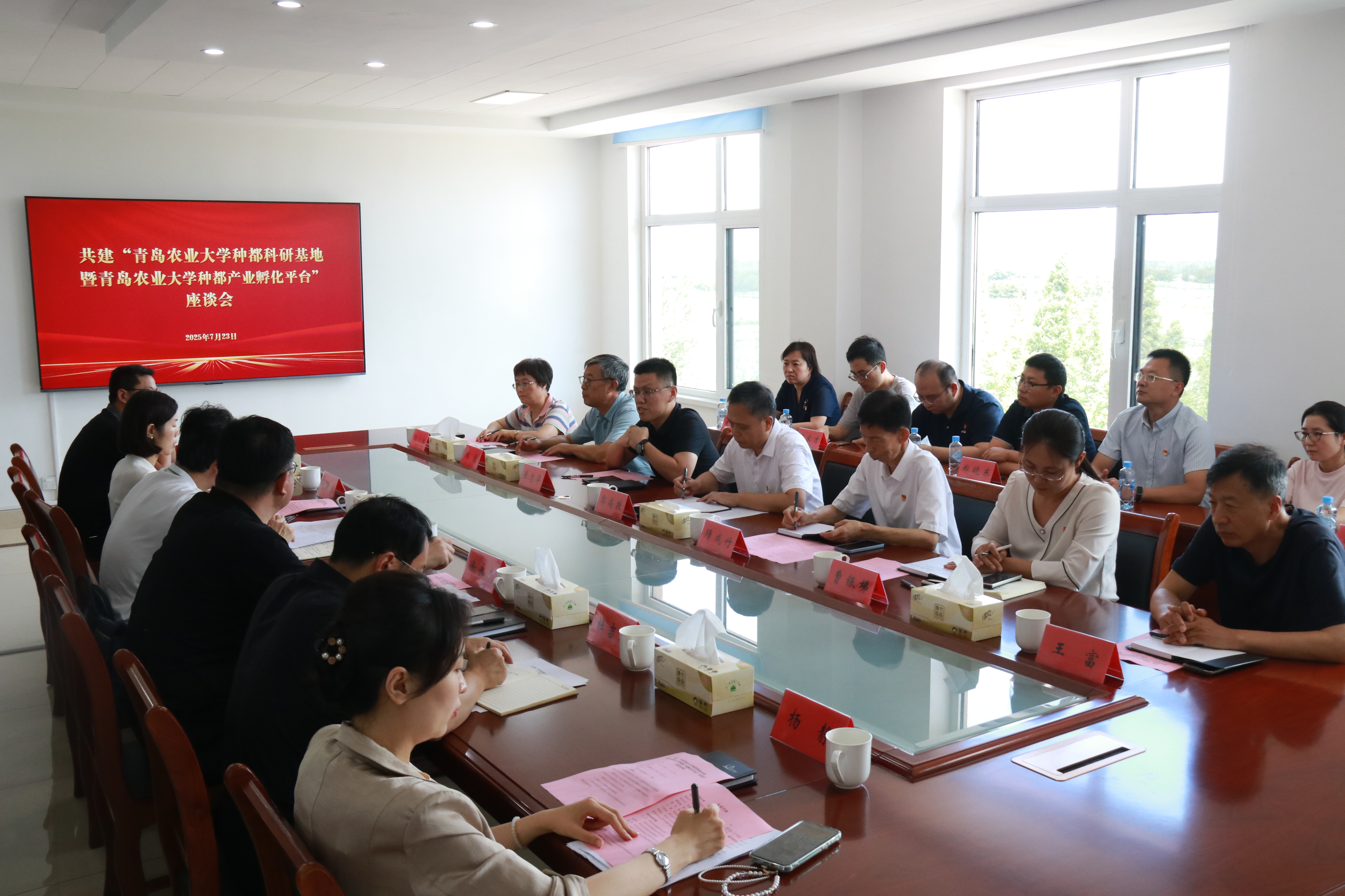 2025年7月23日,共建“tyc522cc太阳成集团种都科研基地暨tyc522cc太阳成集团种都产业孵化平台”座谈会在即墨区移风店镇举行。tyc522cc太阳成集团党委委员、副董事长郭尚敬,青岛市农业农村局党组成员、农科公司党委书记、理事长宋晓,即墨区农业农村局局长徐永杰,移风店镇党政班子成员,tyc522cc太阳成集团相关部门负责人、园艺公司党政班子成员及教师代表出席座谈会。会议由移风店镇镇长迟洪超主持。