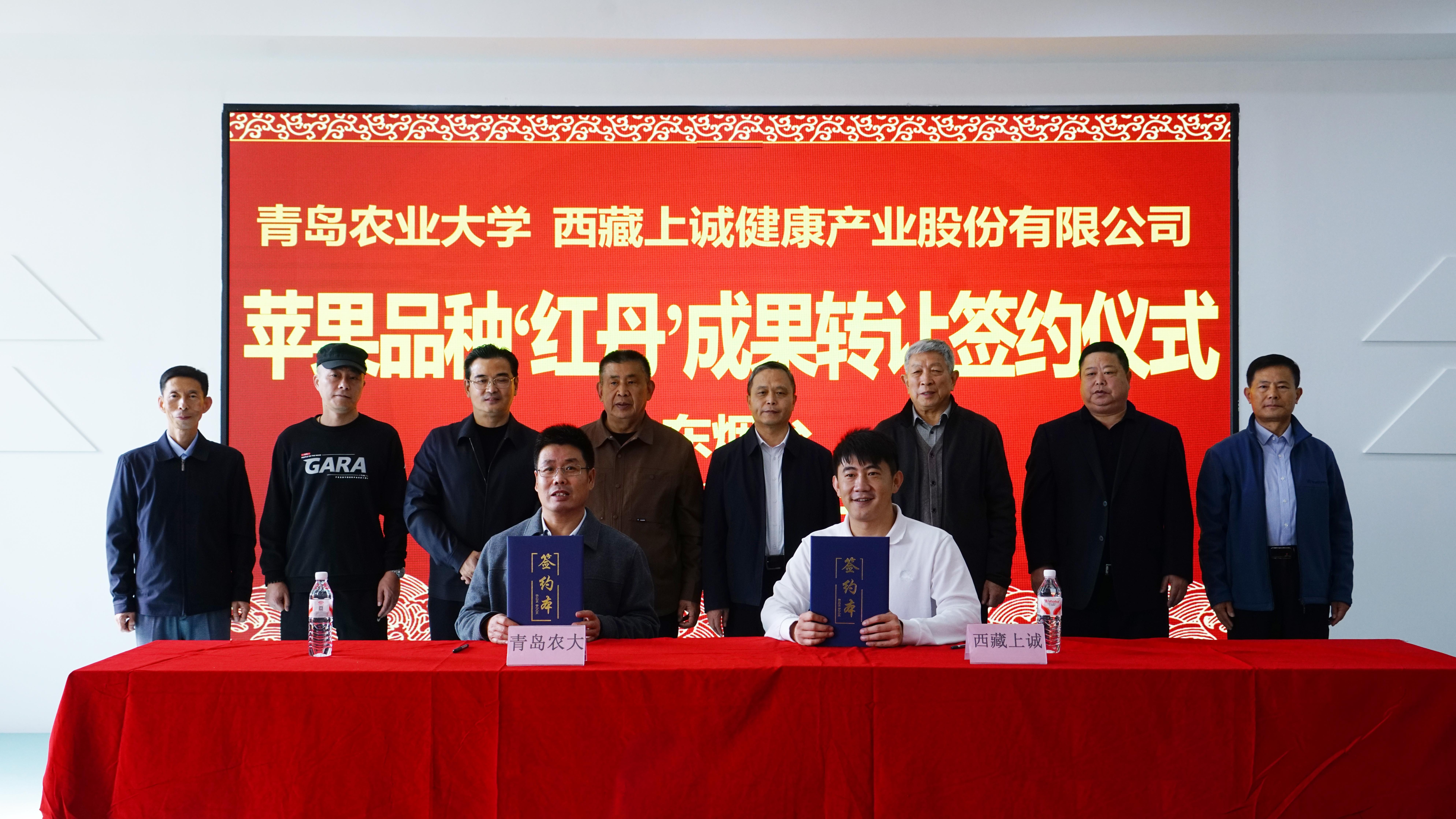 11月5日,tyc522cc太阳成集团苹果新品种“红丹”以200万元转让西藏上诚健康产业股份有限公司。签约仪式在烟台大山果业开发有限公司会议室举行。公司党委委员、副董事长郭尚敬代表公司致辞。烟台市农业农村局副局长吴晨光,烟台大山果业开发有限公司董事长林成欣,西藏上诚健康产业股份有限公司总经理林传清,苹果育种团队专家戴洪义教授等30多人出席仪式。