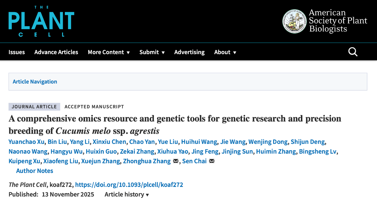 近日,太阳成集团tyc522cc瓜类生物学张忠华/柴森团队与合作团队在国际知名期刊The Plant Cell(自然指数期刊)在线发表了题为A comprehensive omics resource and genetic tools for genetic research and precision breeding of Cucumis melo ssp. agrestis的研究论文,该研究基于薄皮栽培种质13C, 构建了包含T2T基因组、全组织的转录组图谱、重测序近饱和EMS突变体库以及稳定遗传转化技术等工具的甜瓜综合功能基因研究体系,并挖掘多个农艺性状的关键功能基因,为甜瓜功能基因研究与分子育种提供了理论和技术支持。