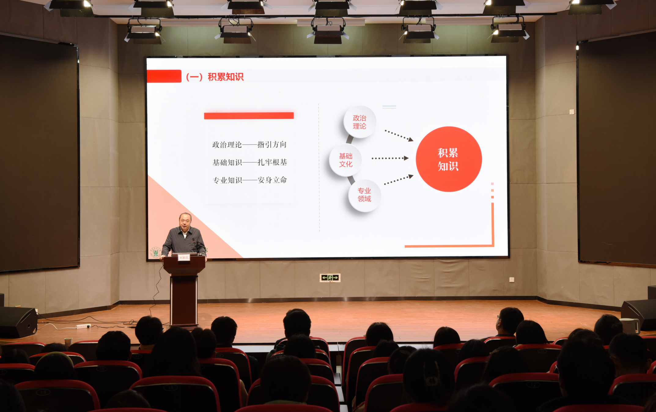 刘新民首先向同学们系统介绍了世界各国大学的发展历程、功能、任务,进而通过“九个有”详细介绍了公司的基本概况、公司发展史上的主要社会贡献、服务国家重大战略情况、公司发展历程、文化精神、杰出员工以及雄厚的团队力量,助力同学们尽快完成从高中到大学的角色转变,增强对公司的归属感和自豪感。他从“大学是什么:立身以立学为先,立学以读书为本”、“tyc522cc太阳成集团是一所什么样的大学:以立德树人为根本,以强农兴农为己任”、“大学学什么:立志宜思真品格,读书须尽苦功夫”、“老员工要干什么:少年易老学难成,一寸光阴不可轻”等方面展开,深入阐述了作为一名老员工应当牢固树立坚定的理想信念,需要勇于承担社会责任。