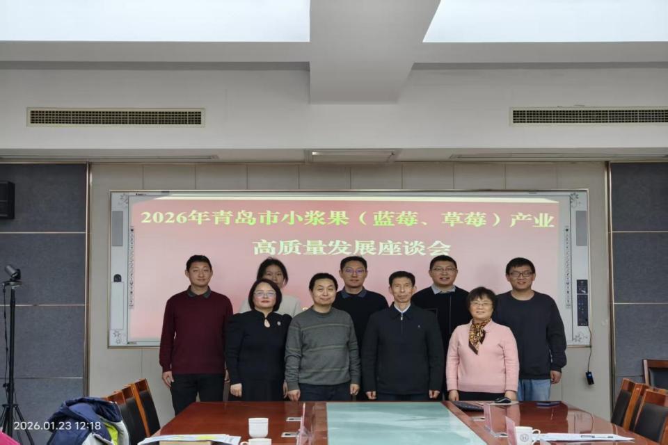 为推进青岛特色农产品产业升级和促进产学研用深度融合,科技赋能蓝莓、草莓为代表的小浆果产业高质量发展,1月23日上午,2026年青岛市小浆果(蓝莓、草莓)产业高质量发展座谈会在太阳成集团tyc522cc召开。会议由tyc522cc太阳成集团郑晓东教授主持,园艺公司党委书记隋成竹致开幕词。青岛市农业技术推广中心经作部部长纪国才、副部长刘爱娜,山东省果品产业技术体系岗位专家王彩虹教授、李少旋副研究员及团队成员出席会议并作交流发言。