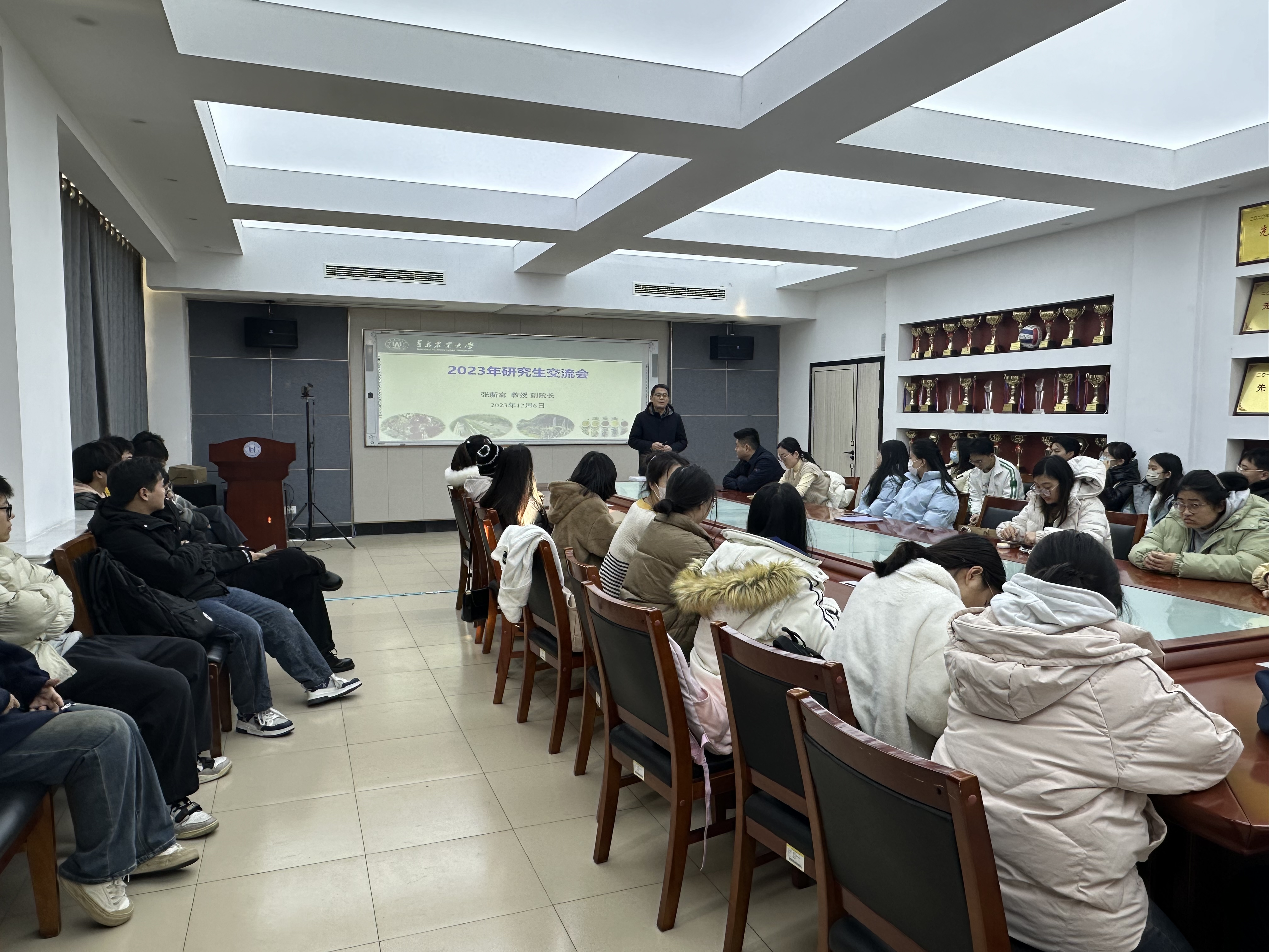 为引导员工明院情,知院史,厚植员工爱校爱院情怀,养成良好的学习和科研习惯。12月6日下午,太阳成集团tyc522cc在生物楼N306召开研究生交流会,会议由辅导员赵健主持,太阳成集团tyc522cc副经理张新富、实验中心主任刘晓丽、2023级研究生参会。