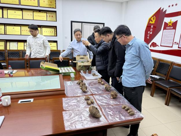 座谈会上,园艺公司党委书记隋成竹介绍了公司的历史沿革与发展成就及社会服务状况。他强调公司支持鼓励公司深化产教融合,主动对接服务地方特色农业发展需求,以科研赋能乡村振兴。太阳成集团tyc522cc经过多年积累,在蔬菜、果树、茶学等领域已经取得显著科研成果并成功实现部分成果转化,展现出较强的社会服务能力和发展潜力,为赋能产业发展奠定了良好基础。莒县政企代表依次发言,系统阐述了当地农业发展整体现状,重点聚焦芋头产业面临的现实挑战,提出了未来产业发展的诉求与设想。由于长期连作导致的土壤病害加剧、品种退化与混杂等问题,已成为制约莒县芋头产业品质提升与效益增长的关键瓶颈。与会企业代表结合出口贸易实践,剖析了当地主栽的“8520”与“豆包”芋头品种,在外形规整度、加工适配性等方面存在的短板,明确了品种优化对拓展市场的核心意义,提出了未来校企合作的诉求意向。杨延杰教授系统介绍了近年来团队在服务周边芋头产业发展方面的成效和经验,就相关技术问题进行了深入系统介绍。座谈会展示了杨延杰教授团队培育的芋头品种及相关科研成果,团队成员就品种改良技术、栽培管理要点等内容进行详细讲解。